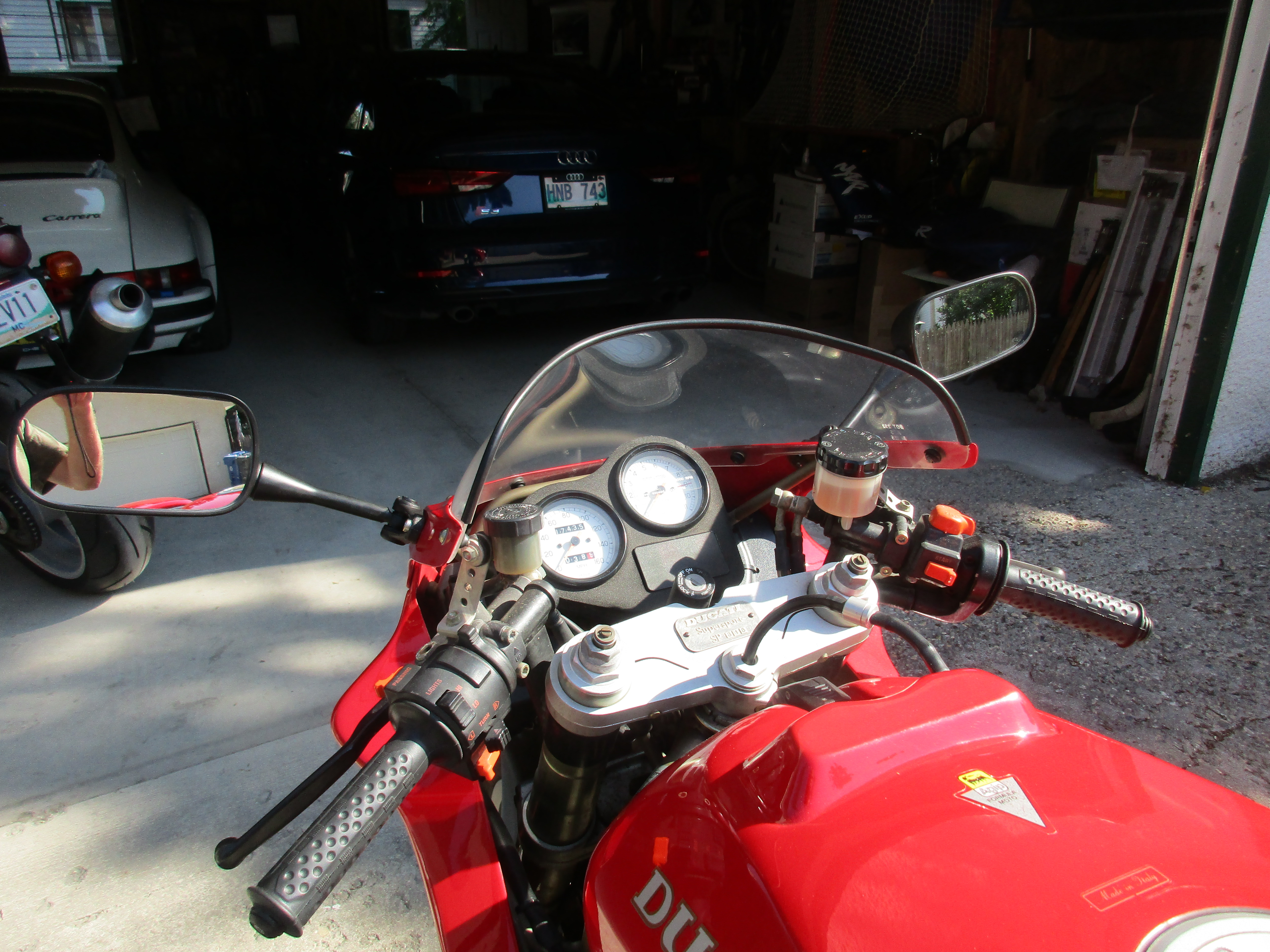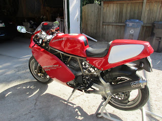 In any event, a reasonable young fellow who works selling luxury cars at a local dealership came to see it, fell in love, and handed me over a stack of cash for the bike and associated bits (stock fender, cans, ECU, front sprocket; paddock stand, two windscreens, cover, and manuals). I got out of the bike exactly what I'd paid for it, so ownership didn't cost me much, and I've had the experience of owning (and going very fast on) a Ducati Superbike.
